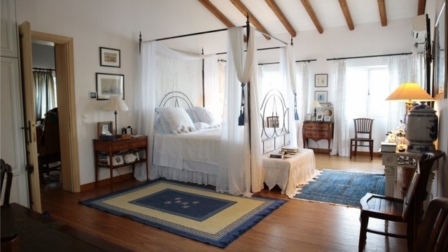 Πωλείται μοναδική βίλα 7 Υ/Δ στο Βορειοανατολικό μέρος του νησιού , στον Άγιο Σπυρίδωνα με πανοραμική θέα στο βαθύ μπλε του Ιονίου και μέχρι την ακτογραμμή και τα βουνά της Αλβανίας. Βρίσκεται φωλιασμένη μέσα σε ένα ελαιώνα 23 στρεμμάτων που καταλήγει στην παραλία με πρόσοψη 200 μέτρα και το μώλο όπου δένουν τα μικρά σκάφη των φίλων της οικογένειας. Το κυρίως εντυπωσιακό σπίτι των 430 τ.μ.εκτείνεται σε 2 επίπεδα συν το υπόγειο των 108 μέτρων με τους βοηθητικούς χώρους. Εκτός από το κυρίως σπίτι υπάρχει και άλλο ένα κτίριο 172 τ.μ. όπως εισερχόμαστε στην ιδιοκτησία μέσω του τσιμεντόδρομου στο υπόγειο του οποίου είναι το κλειστό γκαράζ για 3 - 4 αυτοκίνητα και στον όροφο των 86 τ.μ. ένα διαμέρισμα με καθιστικό, κουζίνα, 1 Υ/Δ/και 1 μπάνιο για το προσωπικό. Από την καταπληκτική πέργκολα που βρίσκεται στα αριστερά της κύριας κατοικίας οδηγούμαστε στην πισίνα υπερχείλισης διαστάσεων 17Χ8 μέτρων από όπου η άκρη της γίνεται ένα με τα βαθυγάλαζα νερά της θάλασσας. Λίγο πιο πέρα είναι το σπιτάκι της πισίνας που μπορεί να χρησιμοποιηθεί και ως ένας μικρός ξενώνας 40 τ.μ. Στο κυρίως σπίτι μπαίνουμε από ένα μεγαλοπρεπές αίθριο που από πάνω είναι η σκάλα με τις δυο εισόδους που οδηγεί στον όροφο όπου από την αριστερή πλευρά του είναι 2 μεγάλα δωμάτια το καθένα με ιδιωτικό μπάνιο και από την δεξιά το master Υ/Δ με ιδιωτικό καθιστικό και ensuite μπάνιο, δωμάτιο - ντουλάπα και μεγάλες ταράτσες με πανοραμική θέα σε όλο το Βορειοανατολικό τμήμα της Κέρκυρας. Τα λόγια είναι λίγα για να περιγράψουν την αισθητική αυτής της μοναδικής βίλας περιτριγυρισμένης από τους μεσογειακούς κήπους με τις πασχαλιές , τους αγάπανθους , τους καλλωπιστικούς θάμνους μέσα στο ασημί παιγνίδισμα των φύλλων των ελαιώνων. Οι χώροι υποδοχής με το τζάκι, το ζεστό γραφείο με την τεράστια βιβλιοθήκη για απομόνωση και διάβασμα, η απολύτως λειτουργική κουζίνα και δίπλα ο υπαίθριος καλυμμένος χώρος φαγητού, όλα με μια country γεύση της Ιταλικής εξοχής με διάσπαρτα διακοσμητικά ενθύμια των ιδιοκτητών φερμένα από όλα τα μέρη του πλανήτη.Πραγματικά μια βίλα που είναι "σπίτι" με την έννοια της θαλπωρής και της καλής αύρας που αποπνέει. Μπορεί να χρησιμοποιηθεί και σαν εξοχική κατοικία γιατί με το πως βγαίνεις στους εξωτερικούς χώρους βρίσκεσαι στην Κέρκυρα! όχι σε οποιοδήποτε νησί αλλά σε αυτό που αποπνέει αρχοντιά με τα καταπράσινα βουνά πίσω και τη θάλασσα ως εκεί που φτάνει το μάτι να ηρεμεί και να ταξιδεύει τους ένοικους του σπιτιού. Η ιδιωτικότητα και η ησυχία είναι δεδομένη λόγω του μεγέθους της ιδιοκτησίας και της θάλασσας μπροστά από αυτήν.Το σπίτι διαθέτει δεξαμενή νερού για τις ανάγκες του σπιτιού και της πισίνας, αυτόματο πότισμα κήπων, ηλιακούς συλλέκτες για την παροχή ζεστού νερού, γεννήτρια για ηλεκτρική ενέργεια όταν παραστεί ανάγκη καθώς και χώρο στο υψηλότερο σημείο του κτήματος για την κατασκευή ελικοδρομίου. Ένα μοναδικό απόκτημα για όποιον το αγοράσει.Luxury villa, north east CorfuThe Villa stands in a majestic position overlooking the sparkling waters of the Ionian Sea with the rugged mountains of the mainland beyond. On the North East corner of Corfu and surrounded by olive groves down to the sea, the villa is uniquely private and secure yet within minutes of the lively resorts of Kassiopi, San Stephano and Acharavi.10 people are accommodated in luxurious bedrooms, each with a terrace opening on to the spectacular, enormous view. Mature Mediterranean gardens lead to a large, sparkling infinity swimming pool with extensive pool house, terraces and covered dining area. A private road wanders down to the sea beyond with a secluded stone bathing terrace.23,000 sq metres of landSeafront 200 metresMain House 538 sq m . of which 107.38 are auxiliary space