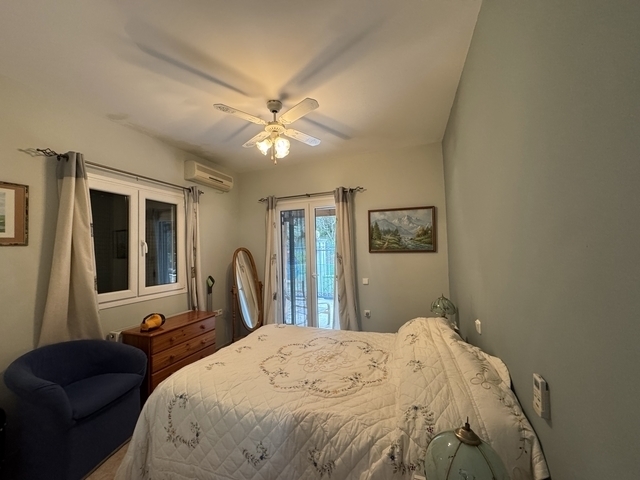 Πωλείται νεόδμητη Μεζονέτα 3 Υ/Δ με θέα στην ύπαιθρο, στον Άγιο Ιωάννη Παρελίων 145 τ.μ. μέσα σε κήπο 1.200 τ.μ. Βρίσκεται σε ήσυχη περιοχή, στην πλαγιά ενός λόφου με απεριόριστη θέα στην καταπράσινη περιοχή της μέσης Κέρκυρας. Έχει πρόσβαση από χωματόδρομο που στο μεγαλύτερο μέρος του έχει στρωθεί με τσιμέντο που καταλήγει στην κεντρική είσοδο του σπιτιού. Στο μπροστινό μέρος είναι περιφραγμένη με κάγκελα και σιδερένιο συρόμενο πορτόνι που μπαίνει σε πλακοστρωμένο με Σινιώτικη πέτρα χώρο πάρκιν 2 αυτοκινήτων. Στο ισόγειο είναι το καθιστικό με το τζάκι και η τραπεζαρία ενιαία με την κουζίνα, 2 Υ/Δ και 1 μπάνιο. Κατεβαίνοντας μια σκάλα με πλακάκια βρισκόμαστε στον ξενώνα που αποτελείται από 1 Υ/Δ ensuite, καθώς και 1 δωμάτιο πλυντηρίου που βγάζουν στην βεράντα του χαμηλότερου επιπέδου. Το σπίτι διαθέτει κεντρική θέρμανση πετρελαίου, ηλιακό θερμοσίφωνα, boiler, ντουλάπες σε όλα τα Υ/Δ, βοηθητικά ντουλάπια δίπλα και κάτω από τη σκάλα , καθώς και πλαστικές ντουλάπες στο μπαλκόνι και στην κάτω βεράντα. Το σπίτι πωλείται επιπλωμένο και εξοπλισμένο με όλες τις ηλεκτρικές συσκευές. Βρίσκεται κοντά στην Aqua Land και οι παραλίες της Γλυφάδας, του Κοντογυαλού και των Ερμόνων απέχουν 15 λεπτά με το αυτοκίνητο. Με την κατασκευή μιας πισίνας μπορεί να διατεθεί και στον τουρισμό. ΑΓΙΟΣ ΙΩΑΝΝΗΣ ΠΑΡΕΛΙΩΝ Ο Άγιος Ιωάννης είναι χτισμένος πάνω στο κεντρικό δρόμο που οδηγεί σε μερικές από τις πιο φημισμένες παραλίες του νησιού, τον Άη Γόρδη, τη Γλυφάδα και τους Έρμονες. Απέχει από την πόλη της Κέρκυρας μόλις 7 χιλιόμετρα. Πρόκειται για ένα ήσυχο χωριό με μια πανέμορφη πλατεία. Εκεί δεσπόζει το παλιό αρχοντικό Γονέμη που σήμερα λειτουργεί ως ξενοδοχείο και εκεί θα βρείτε επίσης το γραφικό ταβερνάκι του Κώστα που μετρά πάνω από 100 χρόνια λειτουργίας.Δίπλα στην κεντρική πλατεία του Αγίου Ιωάννη και μέσα σε ένα καταπράσινο κήπο πέντε στρεμμάτων, βρίσκεται η «Αίθουσα Τέχνης Γ.Κορακιανίτη», που λειτουργεί από το 1994. Είναι το προσωπικό ατελιέ του Κερκυραίου ζωγράφου, αλλά και χώρος στον οποίο φιλοξενούνται εκθέσεις ζωγραφικής και γλυπτικής διαφόρων καλλιτεχνών.Στον Άγιο Ιωάννη μπορείτε επίσης να επισκεφτείτε το εργαστήριο ποτοποιίας για να δείτε πως παράγεται το Κερκυραϊκό κουμ-κουατ. Το αξιοθέατο του χωριού, όμως, είναι το τεράστιο πάρκο νερού, με τις εντυπωσιακές νεροτσουλήθρες και τα παιχνίδια στις δεκάδες πισίνες του.For sale a newly built 3-bedroom Maisonette with a countryside view , in Agios Ioannis of Pareli municipality, 145 sq m. in a 1.200 sq m garden. It is located in a quiet area, on the slope of a hill with an unlimited view of the green area of central Corfu. It has access from a dirt road that is mostly paved with cement that ends at the main entrance of the house. At the front it is fenced with railings and an iron sliding gate that enters a parking space paved with local stones from Sinies for 2 cars. On the ground floor is the living room with the fireplace and the dining room open plan to the kitchen, 2 bedrooms and 1 bathroom. Going down a tiled staircase we find the guest apartment which consists of 1 bedroom ensuite which opens to the terrace of the lower level, as well as 1 laundry room. The house has oil central heating, solar water heater, boiler, wardrobes in all bedrooms, utility cupboards next to and under the stairs, as well as plastic storage cabinets on the balcony and on the lower terrace. The house is sold furnished and equipped with all electrical appliances. It is located near Aqua Land and the beaches of Glyfada, Kontogyalos and Ermones are 15 minutes away by car. With the construction of a swimming pool, it can also be used for tourism.Agios IoannisAgios Ioannis is built on the main road that leads to some of the most famous beaches of the island, Agios Gordios, Glyfada and Ermones. It is only 7 kilometers away from the city of Corfu. It is a tranquil village with a beautiful square. The old mansion of Gonemis dominates there which today operates as a hotel and there you will also find the picturesque tavern of Kostas which has been operating for more than 100 years.Next to the main square of Agios Ioannis and in a verd