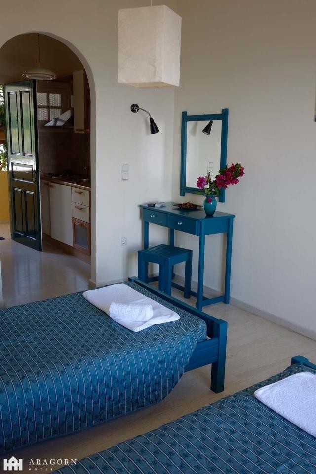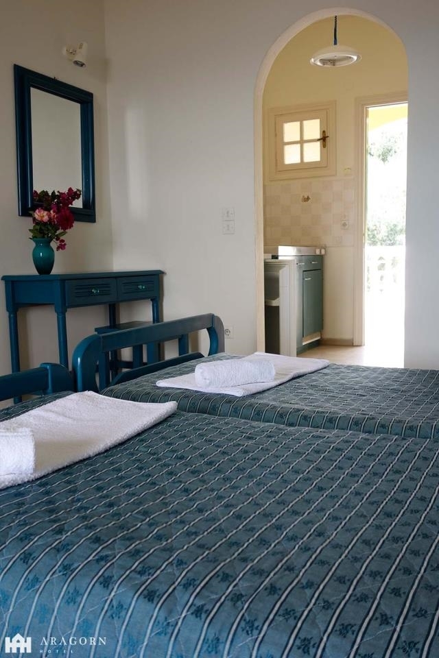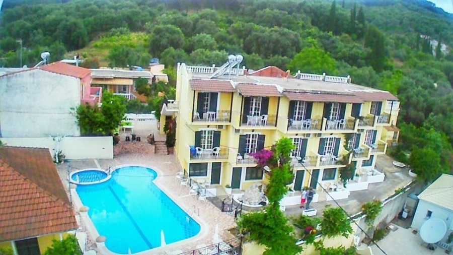 village, the countryside, and the sea. It consists of the main building of 18 rooms , an100 sq.m. apartment with 3 bedrooms , a studio, and a 50 sq.m. snack bar. The property is