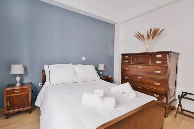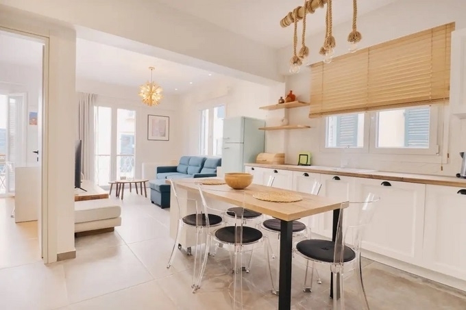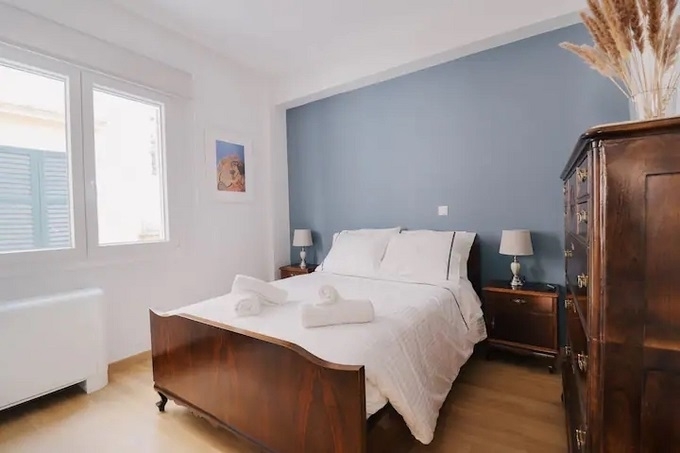 It has a living/dining open plan kitchen room, 2 bedrooms and a bathroom. It has a/c units inverter and a balcony facing to Kapodistriou str. It is renting for short term lease starting from 16/11/2025 until the end of March.