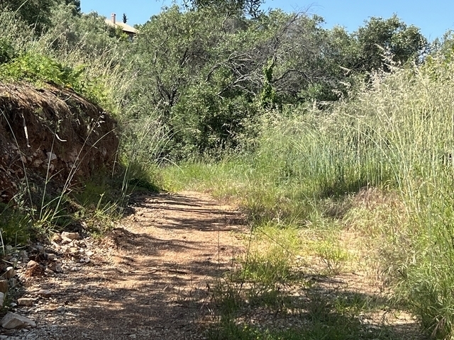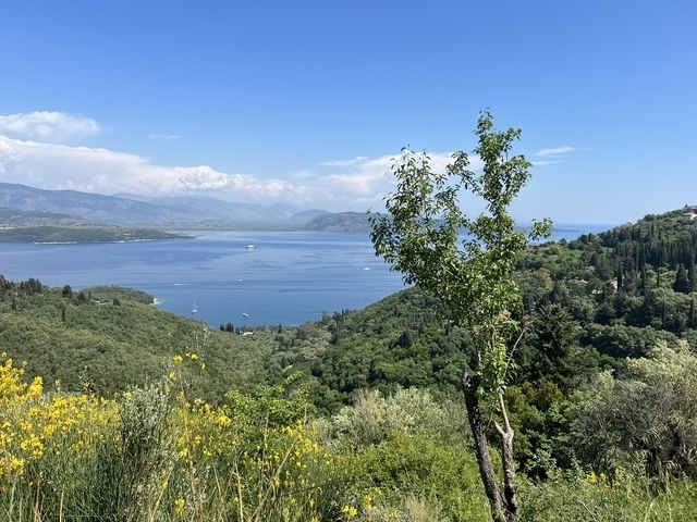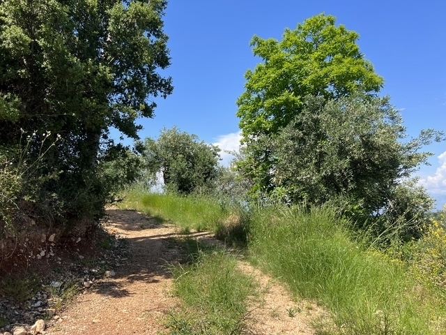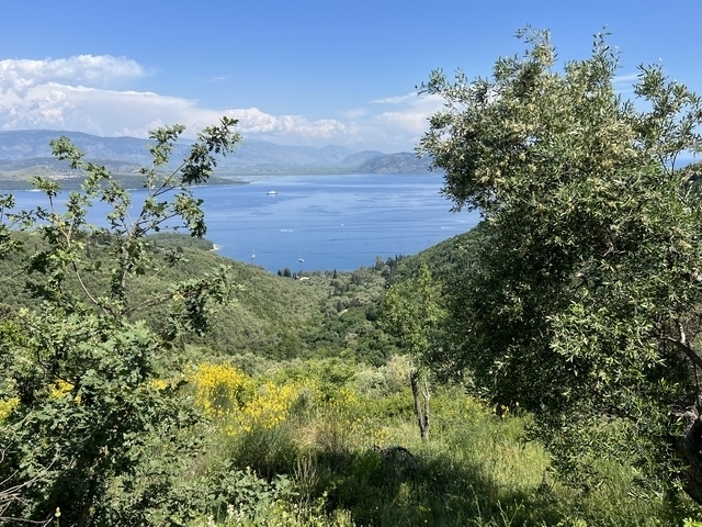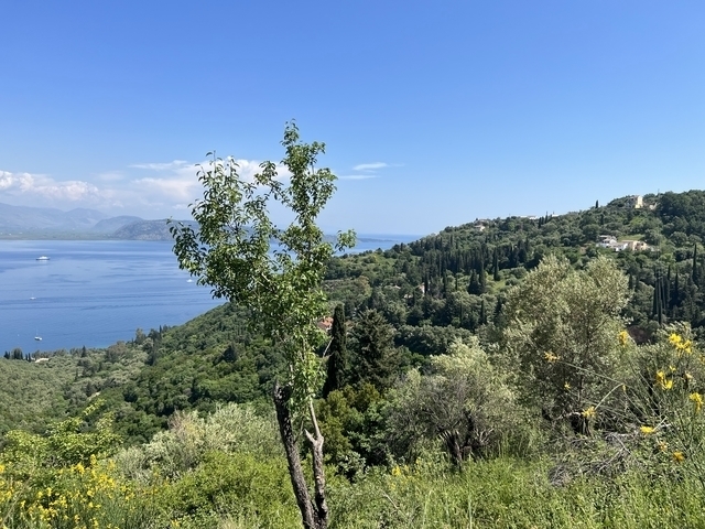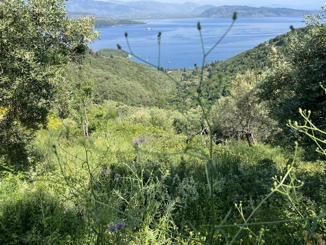 The ground has a steep slope and is full of trees and srubs of Corfiot nature and mature olive trees.