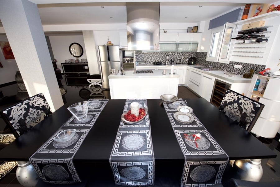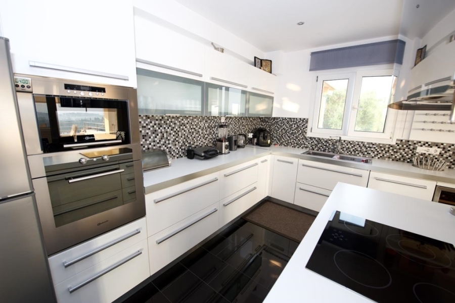 It consists of 3 maisonettes with views from all  levels that the building extends , each with its own independent entrance.  Adjacent to the villa is the enclosed garage for 3 cars as well as the engine room for the heat and the reverse osmosis water.