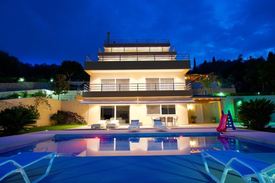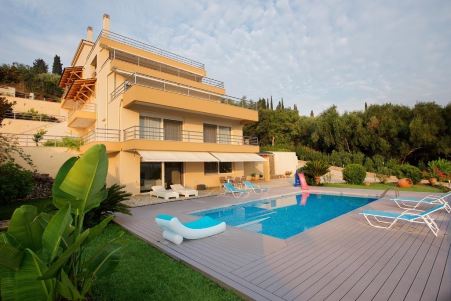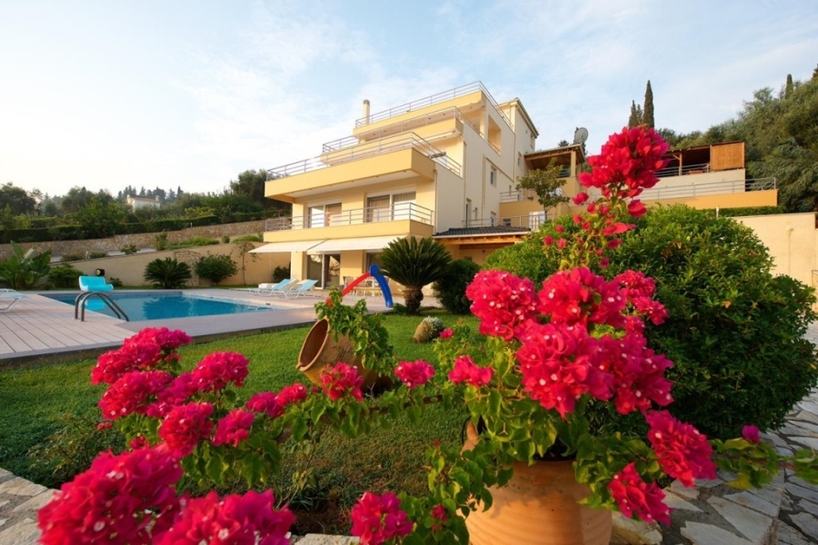 10  bedrooms superb villa in Gouvia with amazing views of the sea, the marina of Gouvia, the bay of Kommeno and the city of Corfu. It is nestled on a hill within a plot of 4.000 sqm  laid out in a wonderful garden with flowers, lawns and trees, with the swimming pool and paved areas leading to all levels of the house.