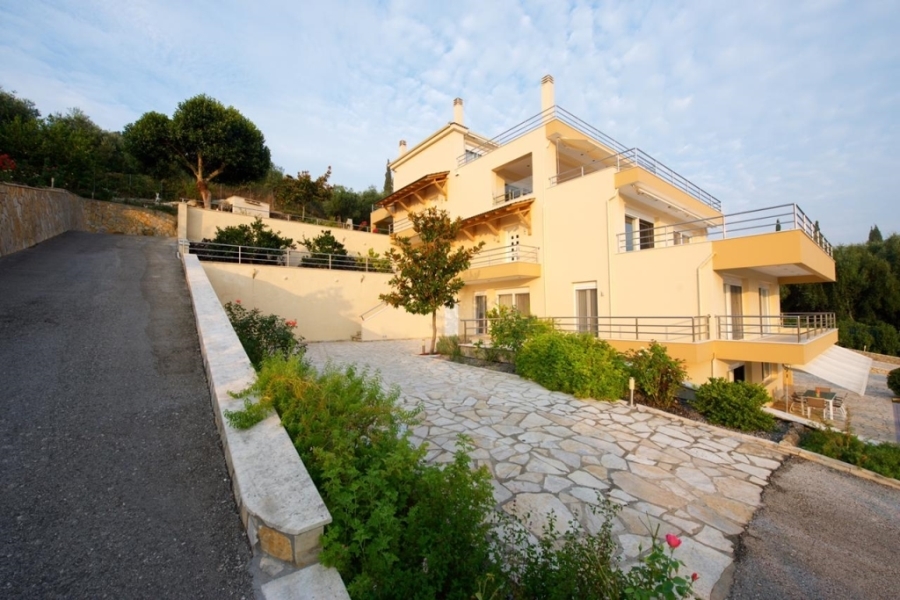 Πωλείται Βίλα 10 Υ/Δ στα Γουβιά 540 τ.μ. με καταπληκτική θέα στη θάλασσα, στη μαρίνα των Γουβιών, τον κόλπο του Κομμένου και μέχρι την πόλη της Κέρκυρας. Βρίσκεται πάνω σε ένα λόφο μέσα σε οικόπεδο 4 στρεμμάτων διαμορφωμένο σε ένα υπέροχο κήπο με λουλούδια , γκαζόν και δέντρα , με την πισίνα και τους πλακοστρωμένους χώρους που οδηγούν σε όλα τα επίπεδα του σπιτιού. Αποτελείται από 3 μεζονέτες με θέα και από τα 5 επίπεδα που εκτείνεται το κτίριο, η καθεμία με ανεξάρτητη είσοδο και κλειστό γκαράζ 3 - 4 αυτοκινήτων και με άνετο χώρο τριγύρω για τα αυτοκίνητα των επισκεπτών. Και οι τρεις μεζονέτες διαθέτουν ανεξάρτητη αντλία θερμότητας, κλιματισμό σε όλα τα δωμάτια, εσωτερικές σκάλες από γρανίτη και γρανιτοπλακάκια σε όλα τα δωμάτια στις αποχρώσεις του μαύρου και του άσπρου καθώς και σύστημα αντίστροφης όσμωσης του νερού που παρέχει πόσιμο νερό σε όλα τα σπίτια. Η μεζονέτα του χαμηλότερου επιπέδου είναι 140 τ.μ. και αποτελείται από ένα άνετο καθιστικό ενιαίο με την κουζίνα και 1 wc. Από εκεί τεράστιες μπαλκονόπορτες οδηγούν στο χώρο της πισίνας και του κήπου. Εσωτερική σκάλα οδηγεί στον όροφο όπου είναι 3 Υ/δ και 1 μπάνιο με τζακούζι. Από το πλάι του κήπου πλακοστρωμένος δρόμος οδηγεί στη δεύτερη μεζονέτα των 180 τ.μ. όπου και εκεί είναι το καθιστικό ενιαίο με την κουζίνα και 1 wc καθώς και εσωτερική σκάλα που οδηγεί στο κάτω επίπεδο όπου είναι 3 Υ/Δ και 1 μπάνιο με τζακούζι. Από τη βεράντα του καθιστικού αυτής της μεζονέτας επικοινωνούμε με το χώρο του κλειστού γκαράζ. Τέλος από το πλάι αριστερά ανεβαίνουμε στην τρίτη και μεγαλύτερη μεζονέτα των 220 τ.μ. όπου και εκεί είναι το καθιστικό ενιαίο με την κουζίνα και 1 wc , 3 Υ/Δ στον όροφο και μπάνιο με τζακούζι καθώς και 1 master υ/δ με ιδιωτικό μπα΄νιο στο τελευταίο επίπεδο. όλες οι μεζονέτες έχουν μεγάλες βεράντες με ανεμπόδιστη θέα στη θάλασσα και τους καταπράσινους λόφους των Γουβιών με τις υπέροχες βίλες φωλιασμένες ανάμεσα σε ψηλά κυπαρίσσια και ελιές. Πίσω από την τελευταία μεζονέτα είναι ένας τεράστιος πλακοστρωμένος χώρος με το barbeque και το χτιστό φούρνο την υπαίθρια τραπεζαρία, το SPA καθώς και ένα διακοσμητικό συντριβάνι φτιαγμένο με λευκή πέτρα όπως άλλωστε είναι και το τοιχίο που οριοθετεί το οικόπεδο της ιδιοκτησίας. Αυτή η μεγάλη βίλα θα μπορούσε να χρησιμοποιηθεί σαν επενδυτικό ακίνητο εφόσον κοιμίζει πάνω από 20 άτομα στους υπέροχους χώρους της ή σαν κατοικία μεγάλων οικογενειών που ο καθένας θέλει να έχει την ιδιωτικότητά του. Είναι ένα πραγματικό απόκτημα για όποιον την αγοράσει που το μόνο που έχει να κάνει είναι να βάλει το κλειδί στην πόρτα και να κατοικίσει αμέσως εφόσον πωλείται όπως είναι συμπεριλαμβανόμενης και της ακριβής αλλά και καλαίσθητης επίπλωσης. Υπερυψωμένο Ισόγειο , 13 δωμάτια ,5 επίπεδο/α ,10 Υ/Δ ,6 μπάνιο/α , 3 WC , 10 parking , 2009έτος κατασκευής , χαρακτηριστικα: Πόρτα Ασφαλείας, Αποθήκη, Τζάκι (3), Τζακούζι, Καλωδιακή Τηλεόραση, Internet, Ηλ. Συσκευές, Εσωτερική Σκάλα, Διπλά Τζάμια, Σίτες, Τέντες, Βεράντες, BBQ, Επιτρέπονται Κατοικίδια, Γεώτρηση, Χωρίς Κοινόχρηστα, Επενδυτικό, Επιπλωμένο, Πολυτελές, Διαμπερές, Προσόψεως, Φωτεινό, Γωνιακό, Κλιματισμός, Boiler, Γήπεδο, Γκαζόν, Αυτ/το Πότισμα, Δέντρα, Πισίνα, Κήπος, Βαμμένο, Εξοχική Κατοικία, Κατάλληλο για επαγγελματική χρήση, Αυτόνομη - Αντλία Θερμότητας 3 τζάκι/α , θέα :Πανοραμική Ανατολικοδυτικός,Γωνιακό,Διαμπερές ,  κοντά σε: Θάλασσα,Παραλία,Κεντρικό Δρόμο,Νο
