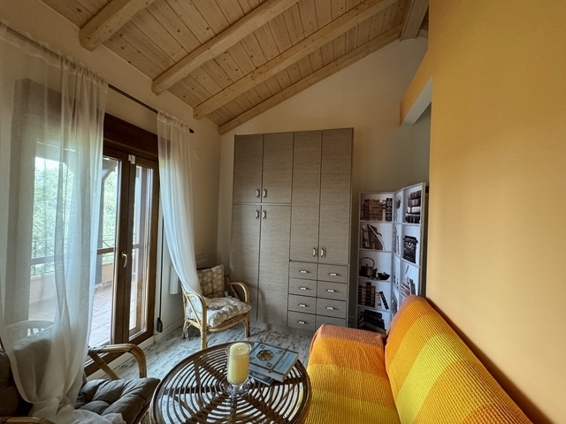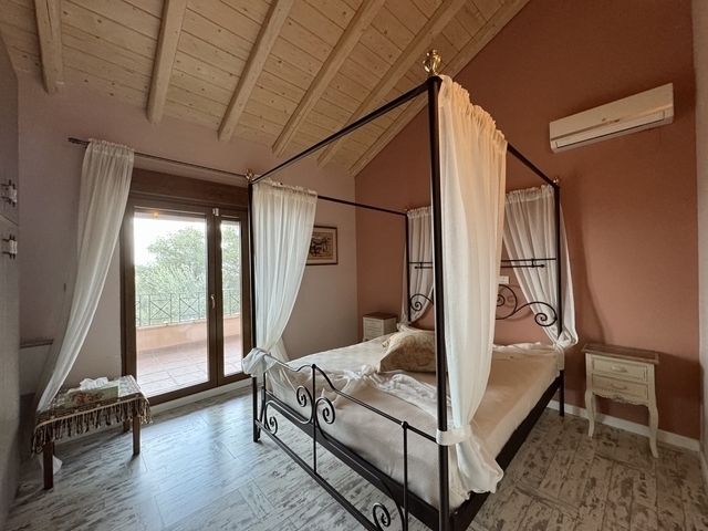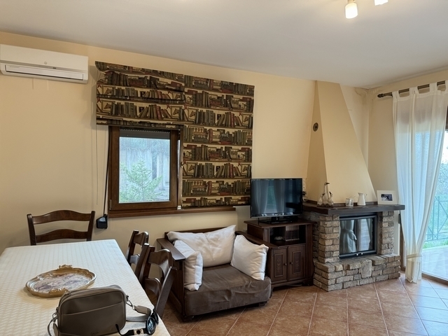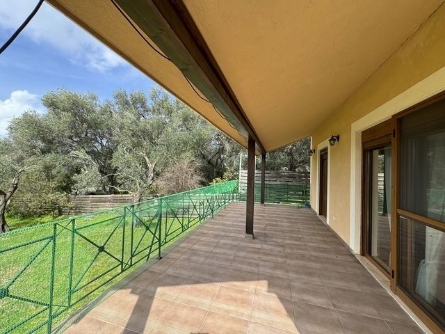 Πωλείται υπέροχη Μονοκατοικία στην Επισκοπή με θέα στην ύπαιθρο της Βόρειας Κέρκυρας συνολικού εμβαδού 130 τ.μ. μέσα σε οικόπεδο 783,49 τ.μ. Έχει πρόσβαση ΄από πλακοστρωμένη δουλεία διόδου με σιδερένιο πορτόνι από όπου περνούν μόνο 2 οικογένειες. Με το αυτοκίνητο φτάνουμε στην είσοδο του σπιτιού και αριστερά στο κλειστό γκαράζ - αποθήκη. Υπάρχει άνετος εξωτερικός χώρος για 2 ακόμη αυτοκίνητα. Το σπίτι είναι 2 επιπέδων με μπαλκόνια μπροστά καθώς και μία μπαλκονόπορτα στην κουζίνα που βγάζει στην αυλή. Στο ισόγειο είναι ένα άνετο καθιστικό/τραπεζαρία με τ΄ζάκι, αριστερά της εισόδου ένα άνετο wc, δεξιά η κουζίνα και μπροστά ένα Υ/Δ με ιδιωτικό μπάνιο. Το καθιστικό και το Υ/Δ έχουν φαρδύ μπαλκόνι που βλέπει προς τον κήπο. Εσωτερική ξύλινη σκάλα από κυπαρρισόξυλο που μοσχοβολάει οδηγεί στον 1ο όροφο όπου είναι 2 Υ/Δ που μοιράζονται ένα μεγάλο μπάνιο, καθώς και στο χωλ μία μικρή kitchenette για να μπορούν οι φιλοξενούμενοι να φτιάχνουν το πρωινό τους και να το απολαμβάνουν στην βεράντα. Η ιδιοκτησία είναι περιφραγμένη. Το σπίτι διαθέτει κεντρική θέρμανση πετρελαίου, ηλιακό θερμοσίφωνα, κουφώματα αλουμινίου με σίτες και διπλά τζάμια, αντίστροφη όσμωση στο γκαράζ που διοχετεύει καθαρό νερό για τις ανάγκες του σπιτιού και αντίστροφη όσμωση μέσα στην κουζίνα για πόσιμο νερό. Το νερό κατεβαίνει από την Κληματιά και τα βουνά του όρους. Το σπίτι μπορεί να χρησιμοποιηθεί και σαν μόνιμη κατοικία από ανθρώπους που αγαπούν τη ζωή στην εξοχή καθώς τα τουριστικά θέρετρα της Αχαράβης και της Ρόδας απέχει 10-15 λεπτά με το αυτοκίνητο. Εκεί κανείς βρίσκει όλα τις ευκολίες που προσφέρει μια μεγάλη πόλη καθώς και τις υπέροχες παραλίες τους. Επίσης μπορεί να χρησιμοποιηθεί και στον τουρισμό με την προσθήκη μιας πισίνας. 3 BEDROOM BEAUTIFUL DETACHED HOUSE IN EPISKOPI, A SMALL NEIGHBORHOOD OF THE MOUNTAINOUS TRADITIONAL VILLAGE OF AGIOI DOULOI, JUST 10 MINUTES DRIVING TO RODA TOURISTY RESORTIt is located in a fenced garden of 1.000 sqm with unobstructed countryside views. It has access from the main road and the cast iron electric gate through the driveway of 20 meters which is common with another property. The stone paving drive way reaches the enclosed garage to the rear of the house where is plenty space for 2 cars, in addition.The garage has plenty of storage place as well as the filter system for the needs of the house. A second filter system is below the sink of the kitchen for the provision of drinkable water in the house.The house is built on two levels in a total surface of 110sqm , it offers 3 bedrooms, two bathrooms ( the one en suite) and a guest toilette.The main entrance opens to a hallway where the wide staircase of local cypress is also located.On the ground floor is the dining/ living area with a fireplace and the double size patio doors which lead out to a full length covered veranda. From there some steps lead lower to the garden.On the right of the hall way a door opens to the separate kitchen which is fully fitted and made of solid oak in its natural colors. From here a balcony door opens to the side of the house on stone paving area.On this floor is a spacious bedroom en suite with patio doors which lead to the same covered veranda of the living room.The comfortable wooden staircase leads on the upper level where are 2 bedrooms with balcony doors open to a covered balcony facing to the garden and a bathroom. In the hallway, at the end of the staircase, a kitchenette is available for the guests of the family.There are air condition units in the living area and electric heaters in the rest of the rooms. Alarm system is also available, as well filter system for drinkable water in the kitchen. The shutters are PVC and the glasses double glazing.The house is sold fully furnished and fully equipped with the electric appliances.It is a very functional and tasty decorated holiday house which can be used as a tourist accommodation, offering serious incomes to its owners. Υπερυψωμένο Ισόγειο , 4 δωμάτια ,2 επίπεδο/α ,3 Υ/Δ ,5 μπάνιο/α , 1 WC , 4 parking , 1990έτος κατασκευής , χαρακτηριστικά: Πόρτα Ασφαλείας, Αποθήκη, Ηλ. Συσκευές, Εσωτερική Σκάλα, Διπλά Τζάμια, Σίτες, Τέντες, Βεράντες, Επιτρέπονται Κατοικίδια, Χωρίς Κοινόχρηστα, Επενδυτικό, Επιπλωμένο, Πολυτελές, Διαμπερές, Προσόψεως, Εσωτερικό, Φωτεινό, Γωνιακό, Επι Λεωφόρου, Κλιματισμός, Ηλιακός, Γήπε