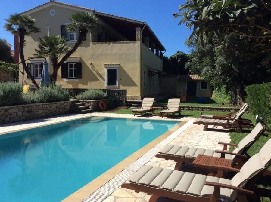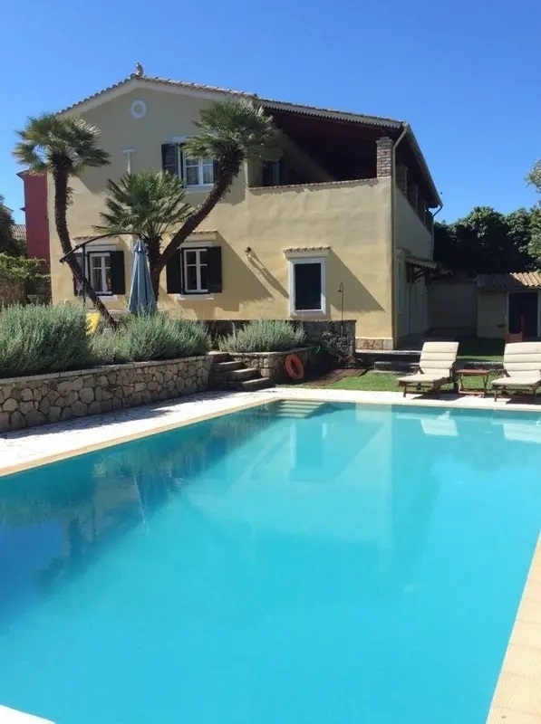 For Sale Detached house, Achilleio ,Gastouri 200sq.m ,Ground floor , 5 rooms ,4 Bedroom/s ,3 bath/s , 1 WC , 4 parking , 1950 built year , features: Security door, Storage room, Fireplace, Internet Line, Electric Appliances, Internal Staircase, Double Glazed Windows, Window Screens, Balconies, BBQ, Pets Allowed, No shared expenses, For Investment, Stonehouse, Traditional house, Mansion, Airy, Roadside, Not Roadside, Bright, On Corner, AirConditioning, Stadium, Grass, Trees, Swimming pool, Back yard (Garden), Painted, Holiday Home, Suitable for Commercial Use 1 fireplace/s , price: 1.500.000€