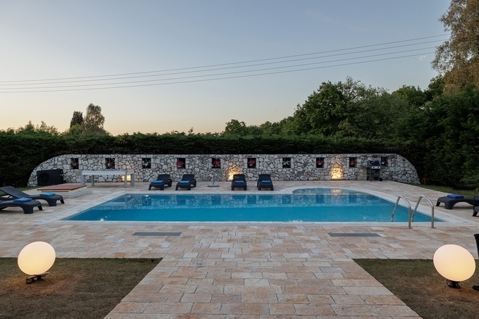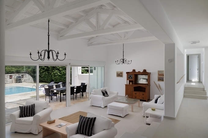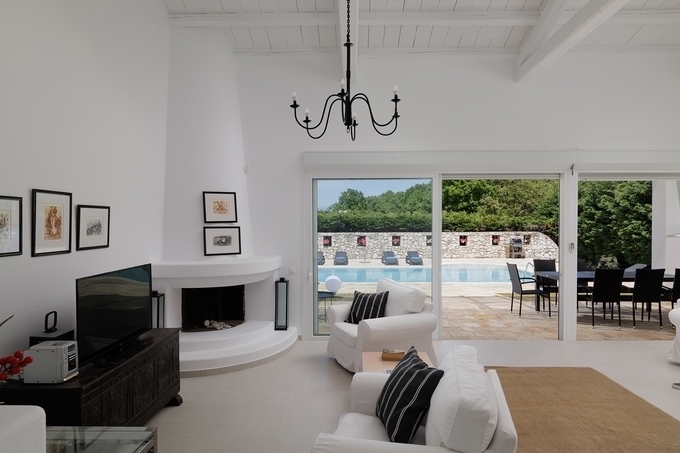 For Sale Villa, Corfu-Chora (Kerkira) 208sq.m ,Ground floor , 6 rooms ,4 Bedroom/s ,4 bath/s , 1 WC , 5 parking , 2003 built year , features: AirConditioning, Security door, Balconies, Cottage, Grass, Automatic Watering, Trees, Swimming pool, Back yard (Garden), Furnishing, BBQ, Double Glazed Windows, Boiler, Fireplace, Internet Line 1 fireplace/s , view :Sea view , price: 1.000.000€